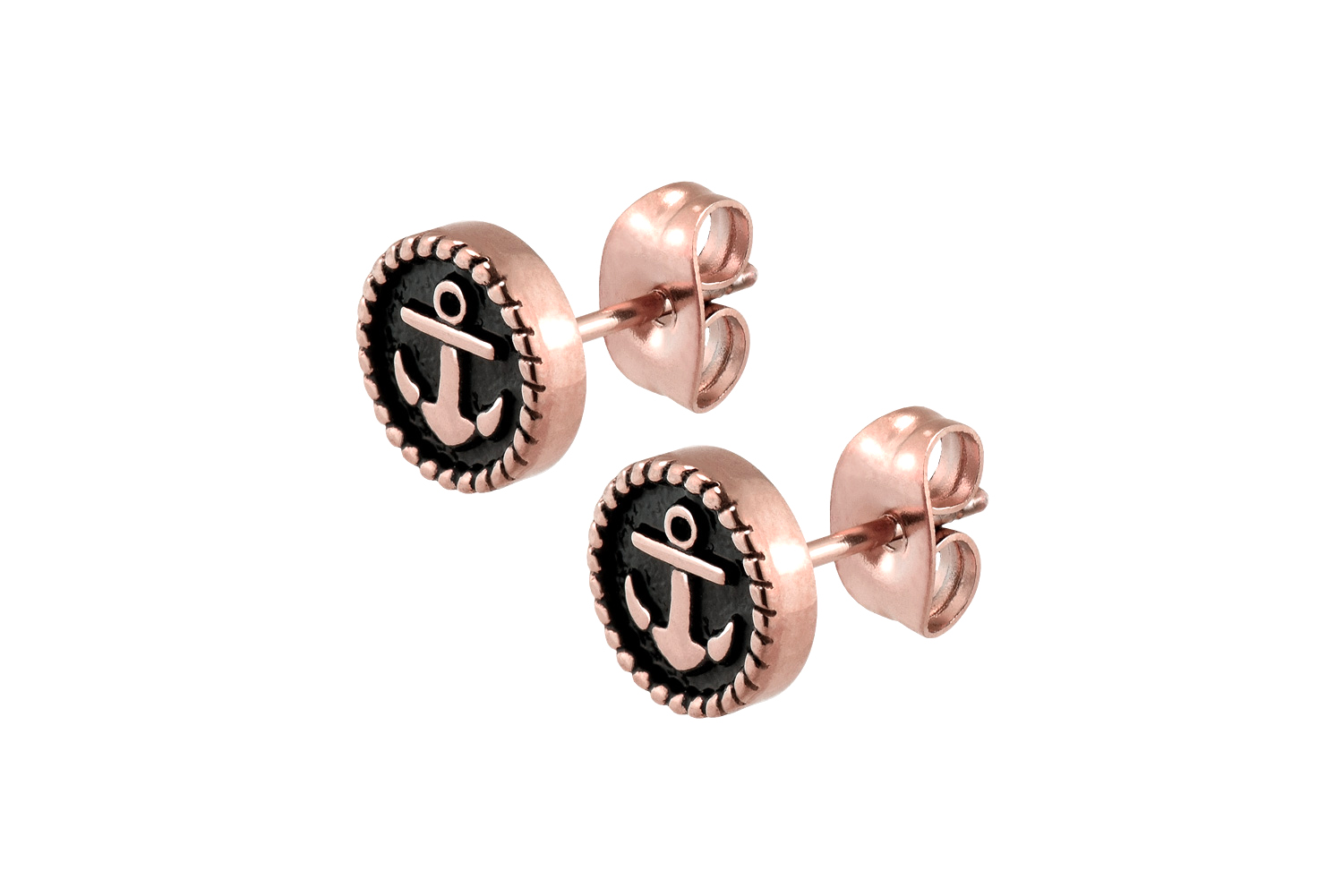 Chirurgenstahl 316L Ohrstecker Chirurgenstahl 316L – Ohrstecker Anker Diese stilvollen Ohrstecker sind aus Chirurgenstahl 316L gefertigt, der neben seiner hohen Qualität auch für Materialeigenschaften wie hohe Beständigkeit und ebene Beschaffenheit bekannt ist. Falls gewünscht, verleiht ihnen eine kratzfeste PVD-Beschichtung eine kräftige Farbe nach Wahl, während die hochglanzpolierte Oberfläche in jedem Fall für ein edles Finish sorgt. Visuell überzeugen die Schmuckstücke dank des bezaubernden Ankerdesigns, das sichtlich mit viel Liebe zum Detail kreiert wurde. Darüber hinaus werden die Ohrstecker, wie abgebildet, paarweise geliefert. Material: Chirurgenstahl 316LOberfläche: hochglanzpoliert / PVD-BeschichtungMaterialfarbe: goldfarben / roségoldfarben / schwarz / silberfarben Stabstärke: 0,8 mmStablänge: 11 mmDesigngröße: 8 mm Alle Maße sind Zirka-Angaben