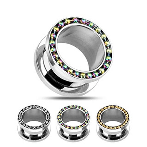 Flesh Tunnel aus hochglänzendem Chirurgenstahl mit vielen kleinen Stahlkügelchen. Dieser Ohr Tunnel ist in Silber und besteht aus Chirurgenstahl . Die kleinen eingefassten Stahlkugeln sind wie bei einer Kette miteinander verbunden und es stehen verschiedene Farben zur Auswahl. Dieser Ohrschmuck ist für bereits gedehnten Ohrlöchern und läßt sich durch das Abschrauben des hinteren Plättchens einfach einsetzen. Es stehen verschiedne Größen und Farben zur Auswahl.