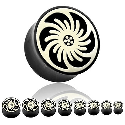 Diese Tunnel Plug bestehen aus schwarzem Horn. Dieser Ohrschmuck lässt sich durch seine Leichtigkeit und Hautverträglichkeit angenehm tragen. Damit die Plugs einen festen Sitz im Ohrloch haben wurden beide Ränder leicht erhöht. Im vorderem Bereich ist der Ohrplug mit einer weißen Tribal Spirale verziert. Es stehen verschiedene Größen zur Auswahl.